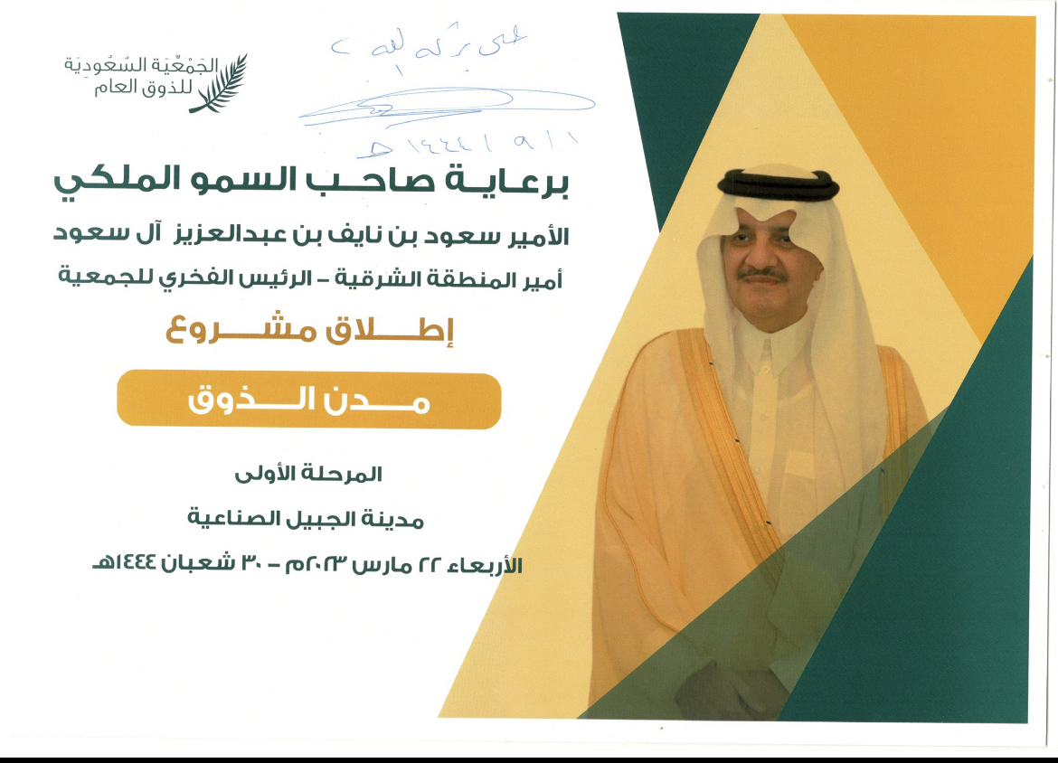 انطلاقًا من سعيها لإيجاد بيئة مجتمعية تمتاز بالذوق العام في جميع جوانب الحياة المختلفة، أطلقت الجمعية السعودية للذوق العام مشروع “مدن الذوق” وذلك بمباركة من صاحب السمو الملكي الأمير سعود بن نايف بن عبدالعزيز آل سعود أمير المنطقة الشرقية -الرئيس الفخري للجمعية-، في مدينة الجبيل الصناعية كمرحلة أولى للمشروع وذلك بالتعاون مع الهيئة الملكية بالجبيل.