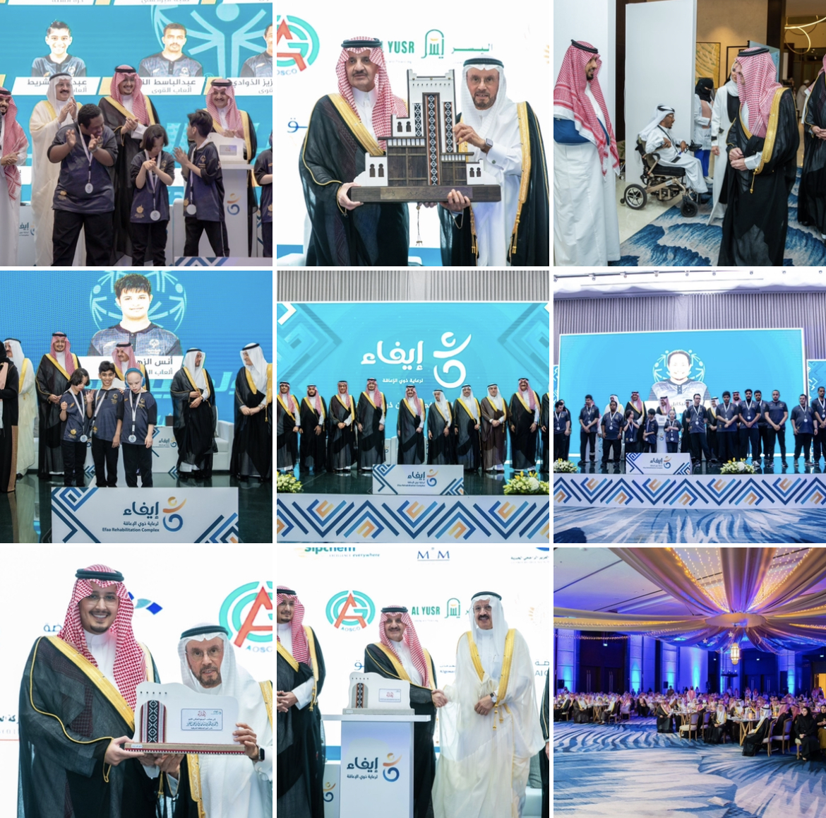 أشاد صاحب السمو الملكي الأمير سعود بن نايف بن عبد العزيز أمير المنطقة الشرقية بالجهود التي تقدمها جمعية إيفاء لرعاية ذوي الإعاقة لخدمة مستفيديها والتي تسهل حياتهم وتسهم في تقديم العون والمساعدة لهم انطلاقا من رسالتها التي تسعى إلى تحسين جودة حياة الأشخاص ذوي الإعاقة وتمكينهم في المجتمع عبر حلول مبتكرة وكفاءات مهنية وشراكات فاعلة .جاء ذلك خلال رعاية سموه الحفل السنوي لجمعية إيفاء لرعاية ذوي الإعاقة بحضور صاحب السمو الملكي الأمير أحمد بن فهد بن سلمان بن عبدالعزيز نائب أمير المنطقة الشرقية .وبدأ الحفل السنوي بجولة لسمو أمير الشرقية في المعرض والذي يتكون من عرض لمخرجات برنامج العلاج الترويحي وهو من البرامج المستحدثة في قطاع التأهيل، وكذلك عرض لمنتجات الحرمين التي صنعت بأيدي فتياتنا ذوات الإعاقة. حيث ألقى المهندس خالد الزامل رئيس مجلس إدارة الجمعية كلمة أكد خلالها أن المملكة شهدت في السنوات الأخيرة نهضة نوعية في قطاعات شتى منها قطاع الخدمات المقدمة لأبنائنا وبناتنا من ذوي الإعاقة، وتُوجت هذه النجاحات باهتمام موجه من أعلى قيادات الدولة في هذا الصدد .وأضاف الزامل بقوله : تعمل جمعية إيفاء منذ إنشائها على رعاية و تأهيل فئة مميزة وفريدة في احتياجاتها، وبدعم من سمو الرئيس الفخري للجمعية و بفضل من الله نجحت الجمعية في إطلاق برنامج التحول الاستراتيجي في عام 2020 و عززنا مستهدفات البرنامج بكوادر مؤهلة و متخصصة لنقدم لأبنائنا من ذوي الإعاقة خدمة نوعية تلبي احتياجاتهم و تتوافق مع تطلعاتهم.كما أشار الزامل إلى أن الجمعية تمكنت خلال العشر سنوات الماضية من خدمة 2,563 مستفيد في مراكز الرعاية النهارية، بمعدل 250 في العام الواحد بخدمة تقدم بشكل يومي، وتقديم الخدمات التأهيلية الطبية الشاملة لأكثر من 24,600 مستفيد في مركز إيفاء الطبي بإجمالي عدد 120,685 جلسة علاجية ،واستفاد ولله الحمد من برنامج الأطراف الصناعية والجبائر عدد 2,563. مريض.ووضح انه في اطار ايمان الجمعية بدور المجتمع في تمكين ذوي الإعاقة تميز عام 2022 بابتكار برامج مجتمعية نوعية تهدف إلى نشر ثقافة دمج ذوي الإعاقة في المجتمع ، كما نعمل من خلال فريقنا على دراسة الواقع و التطوير المستمر لكسب ثقة المستفيدين و نتطلع دائماً لشركائنا في النجاح من رجال و سيدات الأعمال ليكونوا جزءاً فاعلاً من نجاحاتنا. كما أضاف قائلاً: بأننا نحتفل اليوم بإنجازات عام مضى كانت ثمار لرحلة أثرتنا بخيراتها ومهدت لنا الطريق للعمل الانساني المحترف وما كان ليرى النور لولا الله ثم الدعم الدائم وتوجيهات سموكم الكريم. وأعرب في ختام كلمته عن جزيل الشكر والامتنان لصاحب السمو الملكي الأمير سعود بن نايف بن عبدالعِزيز راعي حفلنا هذا على دعمه الدائم لأعمال الجمعية والشكر موصول لنائب أمير المنطقة الشرقية لدعمه الدائم ، كما شكر جميع الحضور ورجال الخير على مشاركتهم الاحتفال وعلى دعمهم لتحقيق تطلعات ذوي الإعاقة وأسرهم، كما شكر وزارة الموارد البشرية والتنمية الاجتماعية على مساندتهم الحثيثة لتطوير أعمال قطاع الإعاقة.واستعرضت جمعية ايفاء خلال الحفل مجموعة من الإنجازات التي حققتها الجمعية والمشاريع التي أقيمت في عام ٢٠٢٢ والمتمثلة في خمسة مجالات وهي : البناء المؤسسي، التطور والنمو، المجتمع، الاستدامة المالية، العملاء والمستفيدون. وتفضل سمو أمير الشرقية بالتوقيع على الزي الرسمي لمنتخب الأولمبياد الخاصة كما كرم سموه أبطال الأولمبياد وعددهم 18 مشاركا من جمعية إيفاء ، بالإضافة إلى تكريم سموه المانحين والداعمين لما قدموه من دعم للجمعية ثم تكريم إيفاء لسموه على رعايته الكريمة وكونه الرئيس الفخري لها.يذكر بأن جمعية إيفاء أعلنت في الحفل عن مشاركة المملكة في الألعاب العالمية الصيفية للأولمبياد الخاص في برلين لعام ٢٠٢٣ ولأول مرة بوفد مشارك بـ١٥ نوعا من الرياضات الأولمبية و٨٥ لاعبا .