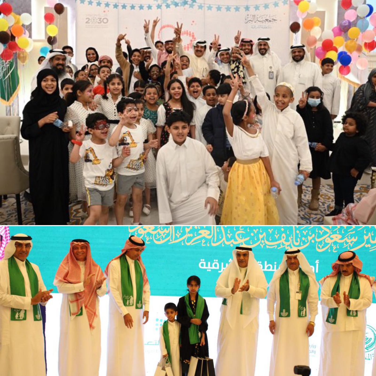 جاء ذلك من خلال الحفل السنوي لأيتام الجمعية برعاية العطيشان وتنظيم جمعية البر بالمنطقة الشرقية تحت شعار (في القلب أنتم) وذلك أمس الاول في قاعة جواهر الشرق بالدمام بحضور أكثر من 500 من رجال الأعمال والأيتام واليتيمات ومنسوبي الجمعيةوتضمن الحفل فعاليات وبرامج ترفيهية جمعت بين رجال الأعمال والأيتام حيث شارك رجال الأعمال الأيتام فرحتهم.