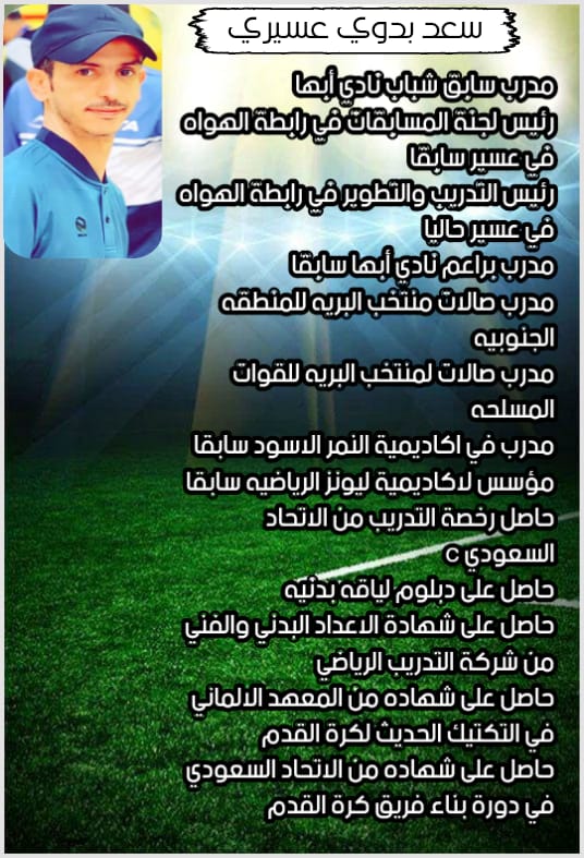 مدرب في شباب نادي أبها سابقا مدرب في نادي جرش سابقا مدرب فريق النخبه من فرق الأحياء مدرب في عده أكاديميات رياضيه