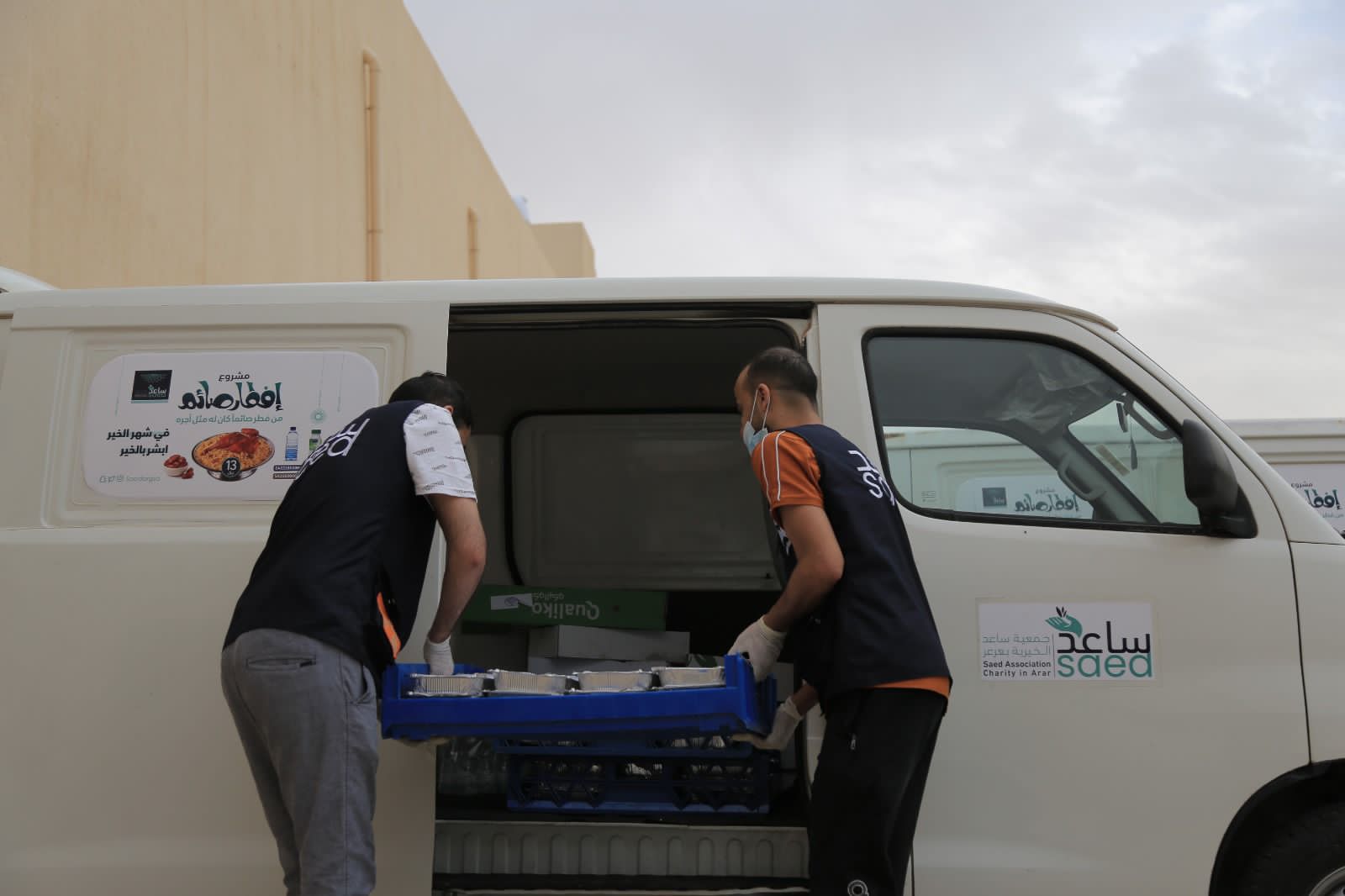 وأوضحت الجمعية انه تم انتاج 49652 وجبة إفطار خلال الفترة الماضية المكونة من الأرز والدجاج والتمر واللبن والماء وتم تهيئة 7 مركبات تنقل هذه الوجبات للمستفيدين المباشرين وهم مستفيدي الجمعية والمستفيدين غير المباشرين وهم المقيمون من جميع الجنسيات عبر عدد من المواقع الحيوية بمدينة عرعر . بهدف إحياء السنة واغتنام الشهر الفضيل بالطاعات وكسب أجور الصائمين.