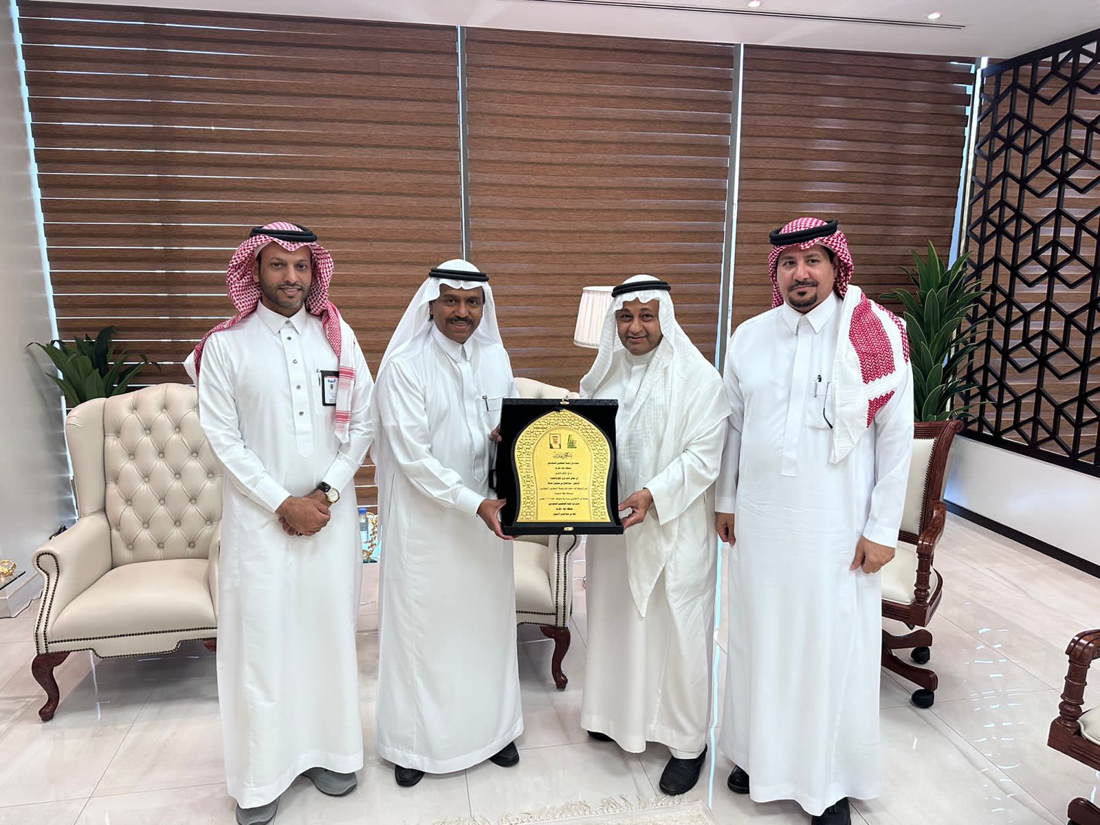 بالإضافة الى مدير إدارة الإعلام بوزارة الحج والعمرة تركي الخلف وفي نهاية اللقاء قدم مدير الفرع درع تذكاري لمعالي نائب وزير الحج والعمرة