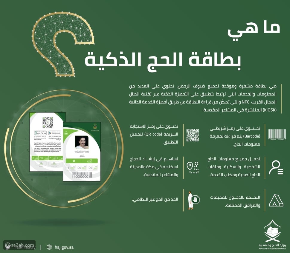 ومن الخدمات المجودة والمتطورة والمأتمته بطاقة الحاج ، ضمن حزمة الحلول الرقمية المتنوعة التي تقدمها في موسم حج هذا العام 1444هــ؛ بغرض تسهيل الإجراءات في رحلة ضيوف الرحمن خلال تأديتهم المناسك.