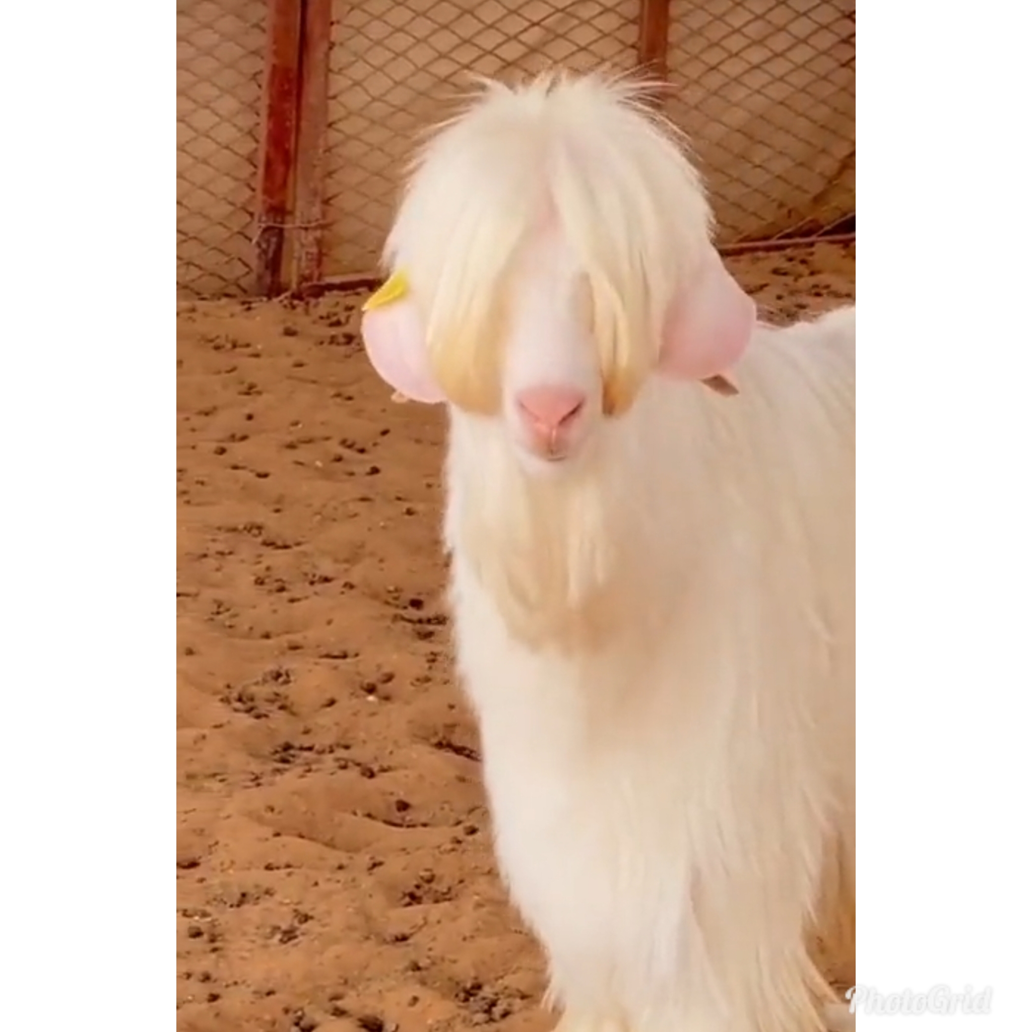 و يظهر الخروف شديد البياض، مع شعر كثيف يغطي وجهه وعينه، ليظهر في النهاية بمظهر رائع أوجد مطالبات بعدم ذبحه في عيد الأضحى المبارك.