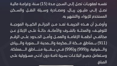أحوال – محمد صالح الزهراني الأمن العام يطيح بمقيم مصري تورّط في نقل مخالف لنظام أمن الحدود بالباحة تمكّنت شرطة…