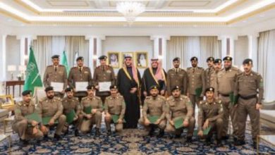 أمير الجوف يكرِّم مدير شرطة المنطقة وعددًا من الضباط والأفراد